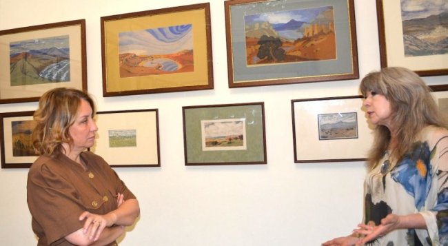Наталия Мирошниченко и Светлана Немирович на вернисаже. Фото с сайта Алуштинского музея. В Алуштинской усадьбе академика архитектуры Алексея Бекетова при поддержке Министерства культуры республики открылась выставка с таким названием, посвящённая 50-летию Дома-музея Максимилиана Волошина. Межмузейная выставка знакомит алуштинцев и гостей города с уникальными экспонатами из основного фонда Коктебельского музея, занимающего значимое место в культурном пространстве полуострова и России. Новая выездная экспозиция - одно из событий в честь юбилейной даты превращения в музей обители поэта, художника, мыслителя мирового масштаба, воспевшего Коктебель и открытую им загадочную Киммерию. Директор Алуштинского литературно-мемориального музея С. Н. Сергеева-Ценского Светлана Немирович отметила плодотворность многолетнего сотрудничества коллективов музеев, поблагодарила за привезённую прекрасную коллекцию редких предметов и произведений, которые в городе-курорте демонстрируются впервые. Посетители делятся впечатлениями, которые получают от знакомства с произведенями мастера слова и изобразительного искусства. Заместитель генерального директора музея-заповедника «Киммерия М. А. Волошина», кандидат филологических наук Наталия Мирошниченко на вернисаже сделала обзор 150 экспонатов из коллекции особо ценного фонда, среди которых акварели Волошина, редкие фотографии, книги, архивные документы, печатные издания и рекламная продукция. Экспозиция даёт представление об истории музея, ярких событиях в его стенах и достижениях коллектива. - Мы также постарались дать представление о современном изучении творчества художника, - отметила Наталия Михайловна. - В специальном разделе демонстрируем материалы конференций: «Волошинские чтения», «Киммерийский топос: мифы и реальность», «Музейные тетради» Крымской музеологической школы «Museum Studio». Инициированные коллективом, они стали значимым событием в культурной жизни республики и России. На них встречаются ведущие учёные нашей страны, ближнего и дальнего зарубежья. Научно-практические конференции, музеологическая школа имеют широкий резонанс в научном, музейном, культурном кругах. Коктебельская выставка в Алуште будет экспонироваться до 21 сентября. Посетить её можно по «Пушкинской карте».