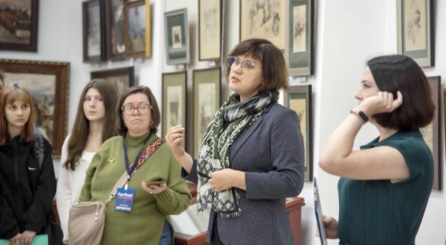 Выставку представляет Светлана Глазунова. Фото Дарьи Фращенко. Выставка живописца, анималиста, блестящего иллюстратора в Симферопольском художественном музее названа коротко - его именем «Николай Самокиш», и посвящена 165-летию мэтра, создателя Крымского художественного училища. В экспозиции более ста предметов из фондов музея: живописные и графические произведения, архивные документы и фотографии. Заслуги академика батальной живописи, действительного члена Императорской академии художеств, заслуженного деятеля искусств РСФСР, лауреата Сталинской премии II степени трудно переоценить. Его творчеству посвящены научные исследования, его именем названо учебное заведение, готовящее профессионалов изобразительного искусства, издаются альбомы его трудов, на симферопольском доме, где жил Николай Семёнович, установлена мемориальная доска, имя его увековечено в названии улицы крымской столицы. - В нашем музее хранится обширная коллекция произведений Николая Самокиша, - рассказывает замдиректора музея Светлана Глазунова. - Среди них одно из самых масштабных и важных в творчестве художника - «Переход Красной Армии через Сиваш», отмеченное Государственной премией 1941 года. А также работы разных лет, своеобразная панорама творчества мастера - от ранних этюдов и журнальной графики до масштабных картин крымского периода, отражающих события Гражданской войны. Творчество Николая Самокиша неразрывно связано с судьбами страны на протяжении более чем полувека. Он пережил пять войн, из них две мировые. Ученик профессора батальной живописи Готфрида Виллевальде (любимого художника Николая I), Самокиш смолоду поставил во главу угла своего искусства служение армии и престолу. С 1918 года художник жил в Крыму. Сначала в Евпатории, а с 1922 года - в Симферополе. Именно здесь его творчество приобрело общественную значимость и сформировало на несколько десятилетий региональную художественную традицию. Непререкаемый авторитет, он стал основоположником художественного образования в Крыму. Экспозицию можно увидеть до 9 ноября.