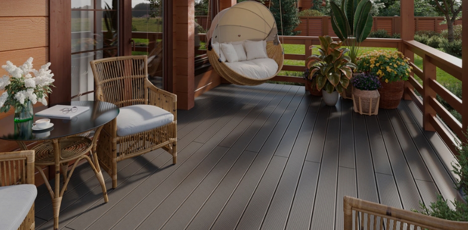 Террасная доска из древесно-полимерного композита (ДПК) обладает рядом значимых достоинств. Она экологически безопасна и рассчитана на эксплуатацию около 20 лет. Материал сочетает натуральную древесину и современные полимерные компоненты, что обеспечивает высокую прочность и огнестойкость. Доска устойчива к воздействию влаги, плесени и бактерий, не деформируется и сохраняет цвет с течением времени. Готова к использованию без дополнительной обработки маслами или лаком. Уход минимален — достаточно периодически промывать водой, чтобы сохранить привлекательный вид.