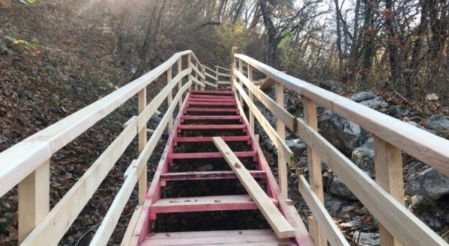 «В настоящее время сотрудники ГАУ РК «Бахчисарайский лесхоз» проводят работы по благоустройству сложных участков, прокладывают деревянный настил, мост, устанавливают ограждения, поручни, оборудуют места отдыха», - также сообщали в Минприроды РК.