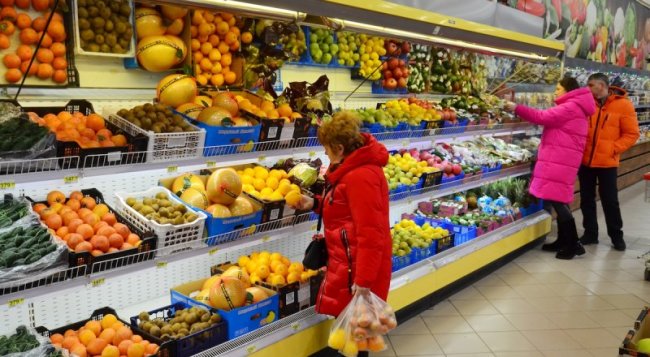 - выше на 14 наименований от 2,4% на масло подсолнечное до 48,9% на соль поваренную пищевую, а также на баранину (кроме бескостного мяса) на 3%, куры охлаждённые и замороженные на 5,1%, макаронные изделия из пшеничной муки высшего сорта на 5,5%, сахар-песок на 7,7%, яйца куриные на 8,2%, говядину (кроме бескостного мяса) на 8,4%, картофель на 9,1%, чай чёрный байховый на 10,1%, пшено на 11,5%, молоко пастеризованное на 19,3%, масло сливочное на 23,6%, рыбу мороженую неразделанную на 26,7%.