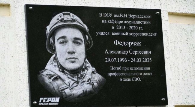 Мемориальная доска военкору Александру Федорчаку теперь висит на стене здания его альма-матер. Фото Александра КАДНИКОВА. В Симферополе, на здании Института медиакоммуникаций, медиатехнологий и дизайна Крымского федерального университета имени В. И. Вернадского, была открыта мемориальная табличка в честь погибшего в зоне Специальной военной операции корреспондента «Известий» Александра Федорчака. Церемония прошла в рамках международного медиафорума «Журналистика в период СВО». Отец журналиста Сергей Федорчак рассказал, что с момента первого мероприятия, посвящённого памяти его сына, для семьи появилась особая цель. Несмотря на казавшуюся безвозвратной утрату, благодаря таким памятным акциям и общей памяти они продолжают жить и черпать в этом силы. Сергей Федорчак добавил, что именно в КФУ имени В. И. Вернадского его сын сформировался как личность и сделал первые профессиональные шаги, и выразил надежду, что память о нём будет передаваться из поколения в поколение. Ранее, 29 июля, мемориальная доска в честь Александра Федорчака была открыта и на территории телерадиокомпании «Крым». Директор компании Вадим Первых подчеркнул, что эта трагедия должна напоминать молодым корреспондентам о важности соблюдения правил безопасности в их работе. Корреспондент «Известий» Александр Федорчак погиб 24 марта 2025 года в зоне Специальной военной операции в результате артиллерийского обстрела со стороны ВСУ. Трагедия произошла в районе посёлка Михайловка, в Луганской Народной Республике (ЛНР), где вместе с ним погибли оператор телеканала «Звезда» Андрей Панов и водитель съёмочной группы Александр Сиркели. Позже президент России Владимир Путин подписал указ о посмертном награждении орденами Мужества корреспондентов: «Известий» - Александра Федорчака и Первого канала - Анны Прокофьевой, а также оператора телеканала «Звезда» Андрея Панова. Соответствующий документ был опубликован 17 апреля на официальном интернет-портале правовой информации. В указе говорится, что награда присвоена за мужество, отвагу и самоотверженность, проявленные при выполнении профессионального долга. Кроме того, медалью «За отвагу» был награждён оператор Дмитрий Волков, получивший ранение в Белгородской области.