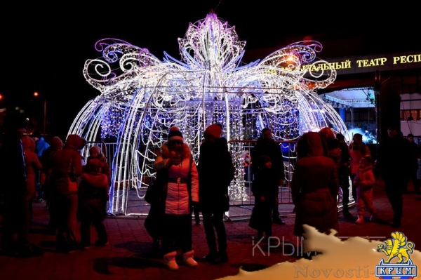 Торжественная церемония открытия главной новогодней ёлки Симферополя состоялась сегодня на центральной площади крымской столицы. Власти города приготовили для симферопольцев и гостей города обширную культурную программу, продлившуюся около полутора часов. Сначала все собравшиеся посмотрели театрализованный концерт. После этого главная ёлка зажгла разноцветные огни гирлянд.
