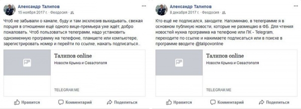 В апелляционной жалобе Талипов развил эту идею и заявил, что канал «Талипов online» (@talipovonline) в мессенджере Telegram ему не принадлежит. При этом в деле имелся нотариально заверенный протокол осмотра источника недостоверной информации (и по решению суда блогер даже обязан компенсировать затраты на услуги нотариуса). А сам Талипов неоднократно на своей странице в Facebook рекламировал свой же Telegram-канал @talipovonline. Сейчас эти посты удалены.