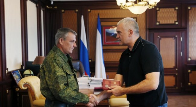 В четверг глава Республики Крым Сергей Аксёнов вручил медаль ордена «За заслуги перед Отечеством» II степени командиру миномётной батареи Сергею Ерёменко.