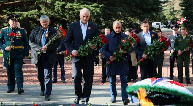 В 79-ю годовщину освобождения Симферополя от немецко-фашистских захватчиков глава Республики Крым Сергей Аксёнов, председатель Государственного Совета Республики Крым Владимир Константинов, руководство Симферополя, представители общественных объединений и просто неравнодушные крымчане возложили цветы к Вечному огню, танку-памятнику освободителям города и мемориалу на Воинском кладбище.