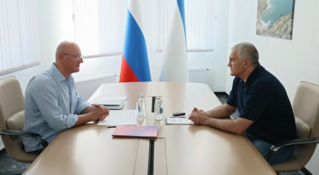 Глава Республики Крым Сергей Аксёнов и зампредседателя Правительства РФ Дмитрий Чернышенко провели двустороннюю встречу в рамках посещения арт-кластера «Таврида» в бухте Капсель, в Судаке. По словам Дмитрия Чернышенко, Правительство России продолжит оказывать необходимую поддержку крымской туристической отрасли.