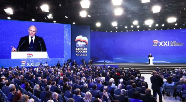 «Перед нами без всякого преувеличения исторические задачи. Их масштаб требует объединения усилий, сплочённости всех патриотических сил. Для «Единой России», для наших сторонников, которые представляют всё наше многонациональное общество, все регионы, социальные, профессиональные группы, - это в первую очередь означает готовность к напряжённой работе, готовность к тому, чтобы идти вперёд, добиваться большего. Вместе со всем народом России отстаивать суверенитет, свободу, безопасность России, всё то, что дорого нам: нашу историю, культуру, ценности и традиции. Укреплять экономику, социальную сферу, научно-технологический потенциал в интересах людей, благополучия миллионов российских семей. И конечно, работать на консолидацию общества, - сказал Владимир Путин. - Что хочу подчеркнуть? Конкуренция, многообразие идей, мнений, открытое и честное обсуждение проблем, путей их решения - это, безусловно, залог динамичного развития страны, без этого развития не будет вообще никакого. Но всегда при всей разнице взглядов все ответственные политические силы должны помнить, что для нас главное, а это судьба, интересы России, счастье, надежды, мечты наших детей, право нашей страны быть сильной. Я бы, знаете, ещё добавил: право и жизненная необходимость нашей страны быть сильной. А значит, всё второстепенное, лишнее, то, что нас разъединяет, нужно отбросить в сторону. И конечно, все решения мы должны и будем принимать только сами, без чужих подсказок из-за рубежа. Россия не может, как некоторые страны, в обмен на колбасу отдать свой суверенитет и стать чьим-то сателлитом. Мы должны помнить и никогда не забывать и детям нашим наказать: Россия или будет суверенной, самодостаточной державой, или её вообще не будет. Это очень важная вещь, которая всегда должна быть у нас в голове и в сердце. Поэтому, конечно, мы сами будем определять и созидать своё будущее. Это и есть суверенное государственное мировоззрение, основа для подлинной гражданской консолидации, для совместной работы».