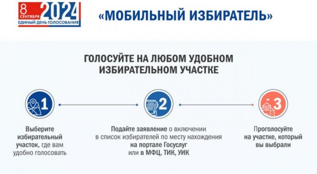 Механизм «Мобильный избиратель» даёт возможность избирателю проголосовать, если место его нахождения в день голосования не совпадает с местом его регистрации:
