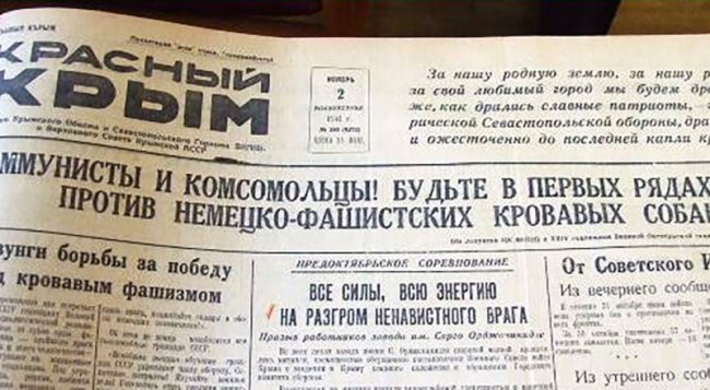 Для фашистов не было запретов, они сами их вводили, «комендантский час, с 17 вечера до 8 утра», за появление в это время в городе без спецпропуска - расстрел; запрет возражать «хозяевам», если они хотят что-то или кого-то забрать - расстрел, «запрет на собак не на цепи» - тоже расстрел и животных, и хозяев. И за гибель одного своего солдата - казнь полусотни симферопольцев враз (позже ставка выросла до сотни)… Вскоре и опробовали приказ: разрывными пулями расстреляли 50 жителей улиц Полигонной, Братской, Выгонной на Петровской балке - облава, показательная казнь за то, что во время взрыва конного обоза на Полигонной погиб один немец. Тот взрыв осуществил один из патриотов города, не пожелавший мириться с оккупацией… Быть может, позже он стал бы подпольщиком или партизаном, народным мстителем в группах таких же патриотов, но тогда, когда узнал о «плате за взрыв», шагнул в ряды сгоняемых в облаву. Мы не знаем точно, так ли это, имена павших не знаем, но, почему-то, представляется, что так поступил патриот. Их очень много было, патриотов, жителей, Вечностью ставших в той оккупации. Враг просто развлекался казнями, даже детей, просто так, «для смеха». Ребятишек со старого города расстреляли за то, что они, обрадовавшись снегу, слепили снеговика: рядом поставили всех и одной очередью… О том случае наша газета, тогда «Красный Крым» редактора Евгения Степанова, рассказала. И о жизни «во временно оставленном Симферополе» (такой приказ часто звучал в начале войны - для занятия лучших позиций), городах и сёлах старалась писать, выходя вначале в осаждённом Севастополе, потом в ненадолго освобождённой Керчи, в эвакуации на Кавказе. Корреспонденты вести о том собирали, партизаны, жители, кому вырваться довелось, а после освобождения, ещё более страшные сведения открывались, братские могилы, колодцы, ужасы воспоминаний…