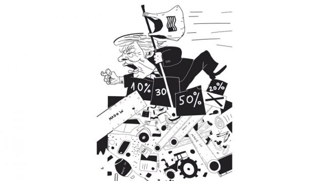 Рисунок Эдуарда Кулиша. Президент США Дональд Трамп сообщил о введении с 9 апреля 10-процентных пошлин на импорт, добавив «персональные» тарифы для ряда стран и отдельных компаний. Максимальный размер пошлины составит 50%. Белый дом опубликовал список из более 60 стран, против которых будут действовать импортные пошлины в рамках «возвращения стране былого богатства». Под раздачу попали даже населённые пингвинами острова Херд и Макдональд и свыше 30 подобных территорий, через которые в США ввезли товаров на 861,3 млн. долларов в прошлом году. Мы на горе всем буржуям. «Это экономическая революция, и мы победим. Держитесь, хотя это будет нелегко, но конечный результат будет историческим», - предупредил президент Трамп американцев со своей страницы в социальной сети. Скептики справедливо напоминают, что за свою долгую и славную бизнес-историю энергичный американский миллиардер 6 раз подавал заявление о банкротстве… А революция подразумевает слом сложившейся системы «до основанья, а затем.». Биржевые индексы уже обрушились: фьючерсы на индекс Доу-Джонса упали более чем на 250 пунктов, фьючерсы на Nasdaq - более чем на 400 пунктов, а индекс S