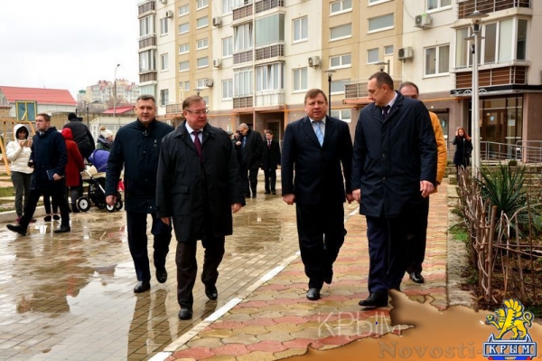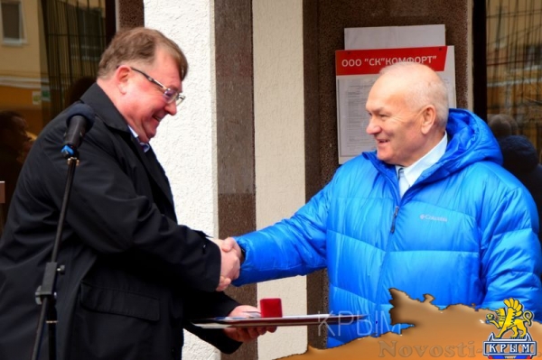 Симферополь, 21 ноября. Крыминформ. Возведённый компанией «Консоль-строй» многоквартирный дом в Симферополе первым получил звание дома образцового содержания. Соответствующую табличку сегодня на фасад дома поместил председатель наблюдательного совета государственной корпорации «Фонд содействия реформированию ЖКХ» Сергей Степашин, передаёт корреспондент Крыминформа. «По всей нашей стране порядка 80 домов признаны домами образцового содержания. В Крыму это первый дом. Прошу мэра после нашего отъезда и дальше обращать внимание на этот дом», – сказал Степашин на торжественном мероприятии. Вице-премьер Крыма Владимир Серов в свою очередь поблагодарил жильцов дома за его образцовое содержание. «Для Крыма это очень знаковое мероприятия – первый в республике дом образцового содержания. Спасибо вам большое за то, что вы с любовью относитесь к своему имуществу, своим детям, которые сейчас находятся на этой замечательной спортивной площадке, ходят по образцовым, чистым, ухоженным территориям», – обратился к жильцам Серов. Удостоенный звания образцового дом находится на улице Киевская, 179А. Кроме фасадной таблички, дом наградили «Знаком качества ЖКХ». Фотографии