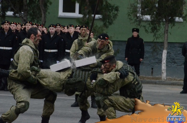 Для гостей мероприятия морпехи подготовили показательное выступление, была развернута выставка боевой техники и современного вооружения. «Со времен Советского Союза Юго-западное направление, включающее Средиземноморье, никогда не было спокойным, поэтому нашим морским пехотинцам всегда хватало боевой работы. В современном мире к уже существующим добавились новые угрозы, самая опасная из которых – терроризм, – обратился к присутствующим командующий ЧФ. – Бригада морской пехоты – это одно из боеготовых и боеспособных соединений Черноморского флота и я, зная настрой личного состава, уверен, что наша морская пехота справится с любой поставленной задачей».