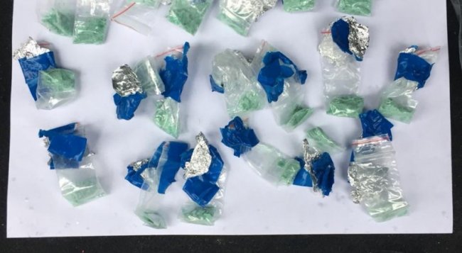 Сотрудники полиции изъяли полимерные пакетики с порошкообразным веществом коричневого цвета, обмотанные изолентой и упакованные в фольгу. Как пояснил подозреваемый, данное вещество - наркотики, которые он закладывал в тайники для дальнейшего их распространения бесконтактным способом посредством сети Интернет.