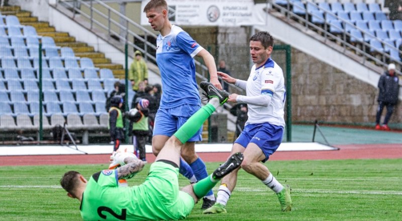 И это было видно с первых минут. Номинальный фаворит не сильно-то усердствовал в передней линии, как, впрочем, и хозяева. Неслучайно первый более или менее опасный момент возник только в середине тайма. Дальше у «Победы» было больше возможностей, однако уверенно держался на линии, а порой и за их пределами голкипер бахчисарайцев Никита Репин, заменивший в составе Сергея Жигайлова. Однако после перерыва первыми «укол» в атаке сделали гости - Данила Лукиных, получив оперативный простор, не сумел завершить хорошую возможность результативным ударом. Тем не менее концовка встречи осталась полностью за хозяевами - в добавленное ко второму тайму время коллектив из Хасавюрта и вовсе чудом не забил - всё решили сантиметры.