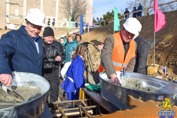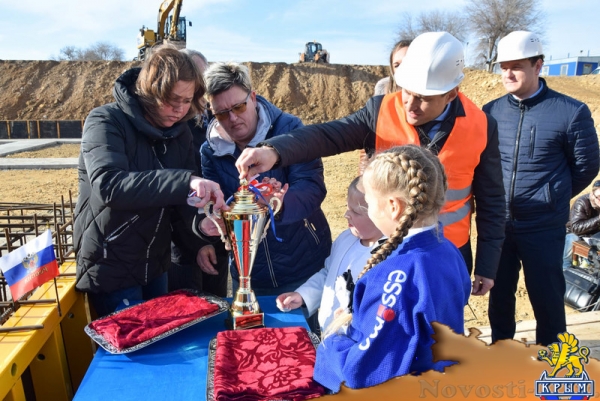 Симферополь, 12 декабря. Крыминформ. Строительство нового физкультурно-оздоровительного комплекса началось сегодня в Евпатории. Представители руководства города и почетные гости заложили памятную капсулу в основание фундамента объекта, сообщила пресс-служба Евпаторийской администрации. «Очень символично, что в День Конституции Российской Федерации в Евпатории закладывается этот мощнейший проект. Уверен, новый спортивный объект будет радовать жителей и гостей города», – сказал заместитель председателя Государственного совета Республики Крым Ефим Фикс. Глава муниципалитета Олеся Харитоненко отметила, что строительство комплекса – значительный шаг в развитии спортивной инфраструктуры всего Крыма. «Уверена, что будущие поколения евпаторийцев по достоинству оценят наш вклад в создание материально-технической базы для развития спортивной Евпатории», – добавила она. По данным пресс-службы администрации города, строительство комплекса планируется завершить к началу 2019 года. Возведение объекта проходит в рамках федеральной целевой программы «Развитие физической культуры и спорта в Российской Федерации на 2016-2020 годы». Технические возможности нового спортивного сооружения позволят проводить спортивные мероприятия как городского, так и республиканского и всероссийского уровней. Фотографии