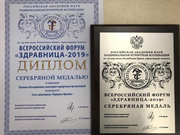 Нестор 26-май, 16:00 193 Новости АРК / Туризм - Крыма.Ялта, 24 мая. Крыминформ. Сеть санаториев «Курорты Крыма» получила серебряную медаль в номинации «Лучшее объединение санаторно-курортных организаций» на всероссийском форуме «Здравница-2019», который прошел в Алуште. Золото разделили между собой «РЖД-Здоровье» и санатории Управления делами президента РФ