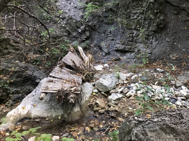 Ускутский водопад даже в начале осени достаточно полноводный. Фото автора. Много ли вы знаете источников, которые остаются наполненными влагой в августе? Даже в сентябре далеко не все реки и водопады оживают, как правило, это происходит ближе к зиме и весной. Есть и приятное исключение - Ускутские водопады. Дорога, как сказка Попасть сюда может любой желающий, только вот не все знают о сокровище Белогорского района. Кроме того, при съезде со «старой дороги» в сторону села Головановка висит объявление, мол, дорога через перевал закрыта. На самом деле, её уже несколько десятков лет не ремонтируют. Местами она кажется опасной, но тут осторожно можно проехать даже на обычной легковушке. Единственное действительно опасное место - часть дороги шириной около трёх метров. Если вдруг вы тут встретитесь со встречным автомобилем, то явно не будете этому рады. Разъезжаться или сдавать назад действительно страшно. Кстати, если вы решите ехать в сторону Ускутских водопадов со стороны Белогорска, а потом сёл Головановка и Красносёловка, то увидите несколько памятников партизанам. Эти земли нашего полуострова обагрены кровью тех, кто прятался от захватчиков, кто боролся с ними и пытался всячески помогать нашим воинам. Очень полезно и познавательно остановиться у каждого памятника, чтобы узнать историю тех, кому мы обязаны мирным небом над головой. Кстати, о самих водопадах. Ускут - это более старое название села Приветного. Причём в Средние века по этому участку горной местности из Карасу-базара (Белогорска) гоняли рабов в Солдайю, то есть в Судак. Можно смело утверждать, что тысячи мужчин и женщин оплакивали этот пусть своими слезами. Потом дорога перешла в ведение князя Воронцова, её расширили и привели в приличный вид. Кстати, есть мнение, что она похожа на Военно-грузинскую дорогу на Кавказе. Мостики на реке Ускут разломаны. Ремонтировать их не спешат. Фото автора. Сегодня назвать этот путь благоустроенным никак не получится, скорее, наоборот. Асфальт давно покинул эту территорию полуострова, лишь часть его сохранилась над селом Красносёловка. Но дорога более или менее хорошая. В отличие от пути из Соколиного в Ялту через Ай-Петри, здесь нет огромных дыр в асфальте, неровности можно объехать. Как только вы проезжаете лесистую часть, стоит начинать делать остановки. Живописность этих мест поражает. Скалы удивляют причудливостью форм, растения - богатством красок, особенно осенью. «В этой части дороги открывается поразительный по своей красоте и оригинальности вид на ряд самых причудливых утёсов и скал, напоминающих башни замки и пики из обвалившихся и осевших глыб», - так писал об этом пути советский географ Александр Крубер в начале ХХ века. Водопады и скалы Сам спуск к водопадам начинается как раз чуть дальше самого узкого участка дороги. Как только вы его преодолеваете, то остаётся проехать буквально несколько минут. Потёртая табличка укажет вам на узкую тропинку, ведущую, кажется в пропасть. На самом деле, всё не так опасно. Первая часть спуска кажется и вовсе лёгкой. Это объяснить легко - стоит шлагбаум. Видимо, охотники периодически проезжают по этой дороге. Обычные легковушки вниз не спустятся. Затем вы увидите небольшую поляну с интересной надписью о том, что именно здесь нужно осмотреть друг друга от клещей. Мы советом пренебрегли, но