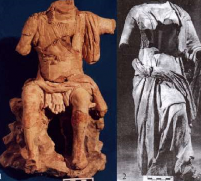 Статуи Диониса и Деметры, найденные во время раскопок. Фото автора.
