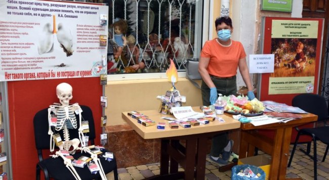 Фото: пресс-служба правительства Крыма В Симферополе на базе ГБУЗ РК «Центр общественного здоровья и медицинской профилактики» состоялась акция, посвященная Всемирному дню отказа от курения. Об этом сообщил главный врач медицинской организации, главный внештатный специалист по медицинской профилактике министерства здравоохранения РК Владимир Мещеряков. По его словам, Всемирный день отказа от курения отмечается во всех странах мира 31 мая, согласно решению, принятому Всемирной организации здравоохранения в 1988 году. В этот день медицинские специалисты проводят мероприятия, направленные на мотивацию людей к отказу от вредной привычки – табакокурения. Охрана здоровья граждан от табачного дыма и последствий потребления табака, а также электронных сигарет является одной из целей регионального проекта «Формирование системы мотивации граждан к здоровому образу жизни, включая здоровое питание и отказ от вредных привычек» национального проекта «Демография». Так, в ходе акции, состоявшейся в Симферополе, специалисты ГБУЗ РК «Центр общественного здоровья и медицинской профилактики» рассказали жителям города о вреде как активного, так и пассивного курения. В качестве первого шага к отказу от вредной привычки курильщикам предложили обменять сигареты на полезные продукты питания – ягоды, овощи и фрукты. В ходе общения с участниками акции организаторы раздали просветительские листовки и памятки, в которых отображены пагубные воздействия табачного дыма на здоровье человека.
