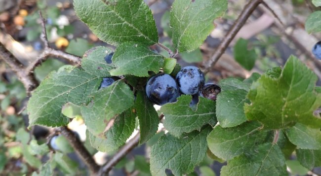 Тёрн уже можно собирать, но для лучшего вкуса стоит подождать лёгкого морозца. Фото автора. Горы, предгорья и степи нашего полуострова щедро делятся полезными ягодами. Да, у нас не выйдешь из леса с полными вёдрами брусники и голубики. Зато проливные весенние дожди и жаркий летний воздух взращивают уникальные по своему составу шиповник, тёрн, барбарис, кизил. Подробно о кизиле мы писали в номере «Крымской правды» за 27 августа 2022 года. Барбарис Вкус, знакомый с детства. Причём вкус преимущественно листьев, а не плодов. Играя в казаков-разбойников в лесополосе или отправляясь по грибы, многие срывали небольшие резные листочки, бодрящие кислинкой. На полуострове известны 2 вида барбариса: обыкновенный и восточный. Растения вооружены колючками, причём у первого вида они трёхраздельные, напоминающие трезубец, а у второго - довольно большие, похожие на иголки, и одиночные. Кустарник довольно ветвистый, но обычно не образует зарослей. Растёт чаще по каменистым сухим склонам. Можно встретить его вдоль троп, а также на опушках лесов. Отличительные признаки барбариса: буро-красная или ярко-жёлтая окраска древесины. Цвести кустарник начинает весной, радуя жёлтыми цветочками. Над ними активно кружат шмели и пчёлы, если позволяет погода. К осени барбарис формирует продолговатые ярко-красные плоды. Их можно есть прямо с куста, а также готовить компоты, добавлять в сборное варенье, соки. Используют плоды и в нетрадиционной медицине. Травники применяют их в качестве желчегонного, мочегонного и слабительного средства. Говорят, что ягоды полезны при потере аппетита и авитаминозе. Барбарис прекрасен в виде приправы. Цельные ягоды засушивают и используют при приготовлении плова, мясных и рыбных блюд. Кустарник полезен людям практически круглый год. Листья и кору собирают рано весной, когда сок только начал движение. Плоды созревают летом и осенью, в зависимости от места произрастания и сорта. Корень собирают поздней осенью. В Никитском ботаническом саду собрана коллекция декоративных видов. Они прекрасно подходят для озеленения участков и выгодно смотрятся в оформлении придомовых и садовых участков. Тёрн Заброшенные дачные участки, дикие сады, опушки лесов, холмы, склоны оврагов и даже пустыри часто оказываются местом обитания колючей сливы или терновника. Он же тёрн и козлиная ягода. Упоминания об этом растении встречаются ещё в библейских преданиях. А лекари древних времён считали, что там, где проросли семена тёрна, земля является священной. Плоды кустарника созревают с июля по сентябрь, в зависимости от того, в каком районе Крыма они произрастают и какой была погода в этом сезоне. Но снимают урожай часто после первых заморозков, когда в плодах меняется химический состав. Они становятся кисло-сладкими, утрачивая вязкость. На дикорастущих кустарниках урожай обычно не самый большой. Если же вы «одомашните» культуру, регулярно ухаживая за растением, то взрослый куст будет радовать вас 10-15 кг ягод. Хранятся они замечательно. Полезным является каждый элемент растения. Соцветия и листья тёрна используются как самостоятельно, так и в сборах при почечной и сердечной недостаточности, а также имеют мочегонный эффект. Листья в виде отваров и чаёв хороши для укрепления сосудов. Ягоды обладают антибактериальным и потогонным свойствами, применяются 