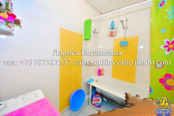 Горячая вода | Телевизор | Интернет | Парковка | Холодильник | Стиральная машина | Детская площадкаСанузел раздельные санузел и душ Питание Балкон благоустроенный под кухню. отдельная плитка и холодильник на болконе Автостоянка возле дома есть место под парковкуЧто есть на территорииалкон благоустроенный под кухню. отдельная плитка и холодильник на болконеВид из окон на преддомовой полесадник Условия для детей Возле дома есть детская площадкаПлощадь (территория): 15Всего номеров: 1Всего этажей: 12Этаж: 2Расположение и инфраструктураВозле дома есть детская площадка магазины продуктовые и хозяйственные, бар, остановка маршрутки 10 прямо рядом с домом Пляж до набережной и пляжа 5мин.на маршрутке Условия бронирования Вопросы по тел,(viber,WatsUp) 89177094779, (VK) id206499889и на почту.otdihvyalte.jimdo.com@yandex.ru Лариса Евгеньевна Ялта.Сменить Галерею
