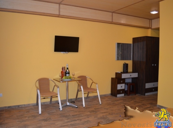 В КАЖДОМ НОМЕРЕ ЕСТЬ: • ГОРЯЧАЯ И ХОЛОДНАЯ ВОДА • КОНДИЦИОНЕР • ТВ с РОССИЙСКИМИ КАНАЛАМИ • СТИРАЛЬНАЯ МАШИНА • ГЛАДИЛЬНАЯ ДОСКА УТЮГ • КУХНЯ с ХОЛОДИЛЬНИКОМ • САНУЗЕЛ С ДУШЕМ • ИНТЕРНЕТ и другое. А ТАКЖЕ: БЕСПЛАТНО!!! • ОХРАНЯЕМАЯ ТЕРРИТОРИЯ • ОХРАНЯЕМАЯ АВТОСТОЯНКА • МАНГАЛ, ШЕЗЛОНГИ с ЗОНТИКАМИ Удобства и услуги Горячая вода | Телевизор | Интернет | Парковка | Кондиционер | Холодильник | Стиральная машина | Мангал | Собственный пляж | Полотенце | УтюгСанузел в каждом номере Питание в каждом номере оборудованная кухня Автостоянка охраняемая (бесплатно)Что есть на территории• ОХРАНЯЕМАЯ ТЕРРИТОРИЯ • ОХРАНЯЕМАЯ АВТОСТОЯНКА • МАНГАЛ, ШЕЗЛОНГИ с ЗОНТИКАМИЕсть вид на мореВид из окон на МОРЕ Условия для детей мелкое дноВсего этажей: 4Расстояние до: моря: 10 Цены на услуги 2019 цена зависит от месяца проживания и периода проживанияСкидкипо согласованию с администрацией Условия бронирования через форму на сайте (желательно предоплата) Трансфер по договоренностиКак добратьсяинформация на сайтеСменить Галерею