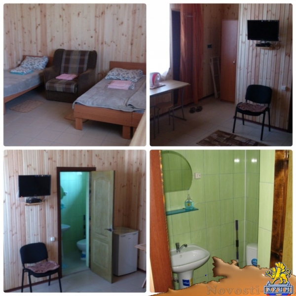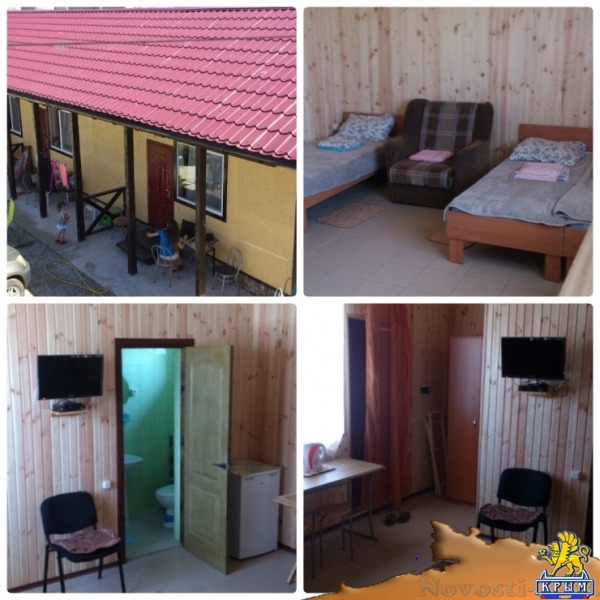 Цены указаны за номер в сутки Май: от 1500 до 2000 руб Июнь: от 1600 до 2100 руб Июль: от 1800 до 2500 руб Август: от 1800 до 2500 руб Сентябрь: от 1500 до 2000 руб Общая информация о номерах Номера постройки 2015 года, отделаны липой потолки высотой до 3х метров, номера площадью от 20 м2. В каждом номере отдельный санузел, интернет , круглосуточно холодная и горячая вода, 3 спутниковые антены . Все постельное белье, матрасы, мебель и т.д. новое. Возле каждого номера есть навес со столиком и стульями для отдыха. Номера 2-местный “двухместный” С одной двухспальной кроватью на 2-ом этаже,с видом на море, можно доставить раскладушкуНомеров: 1Цены за номер в сутки Май: 1500 руб Июнь: 1600 руб Июль: 1800 руб Август: 1800 руб Сентябрь: 1500 руб 3-местный “Трехместный” Один номер с двухспальным диваном и креслом-кроватью- отдельно стоящий, второй на 1-ом этаже с двухспальным диваном и односпальной кроватью можно доставить рвскладушкуНомеров: 2Цены за номер в сутки Май: 1700 руб Июнь: 1800 руб Июль: 1800 руб Август: 1800 руб Сентябрь: 1700 руб 4-местный “Четырехместный номер” Один номер с тремя односпальными кроватями и креслом-кроватью, второй с одной двухспальной кроватью, одной односпальной кроватью и креслом кроватью, можно доставить раскладушкуНомеров: 2Цены за номер в сутки Май: 2000 руб Июнь: 2000 руб Июль: 2200 руб Август: 2200 руб 4-5-местный “Двухкомнатный -четырехместный” Номер на 2-ом этаже, в одной комнате двухспальная кровать, во второй- две односпальные кровати можно добавить раскладушку или кресло-кроватьНомеров: 1Цены за номер в сутки Май: 2300 руб Июнь: 2500 руб Июль: 2500 руб Август: 2500 руб Сентябрь: 2300 руб Удобства и услуги Горячая вода | Телевизор | Интернет | Парковка | Кондиционер | Холодильник | Стиральная машина | Детская площадка | Мангал | Полотенце | Утюг | Беседка | Постельное белье, полотенца, посуда , чайник, микроволновая печь - все входит в стоимость номеровСанузел в номере Питание возможность готовки входит в стоимость Автостоянка бесплатно на стоянке 100 метров от номераЧто есть на территорииЛетняя кухня, мангал, беседка, зона отдыха: шезлонги, качели,дартинг, летний сад, зона отдыха для детейЕсть вид на мореВид из окон море и двор Условия для детей Есть детские кровати, манеж, столики и стульчики Отдых с животными возможен по предварительной договоренностиПлощадь (территория): 5 сотокВсего номеров: 6Всего этажей: 2Этаж: 1Расстояние до: моря: 200 магазина: 300 базара: 300 аптеки: 300 автостанции: 300 центра: 300 районного центра: 300 Расположение и инфраструктураРядом магазины, рынок, кафе, автобусная остановка. В 20 минутах ходьбы целебное грязевое озеро. Цены на услуги Цены варьируются от количества спальных мест в номере и количества комнат в номереСкидкиДействует гибкая система скидокУсловия и ограниченияКурить в номерах нельзя- на территории можно Условия бронирования предоплата за двое суток проживания Трансфер возможно за дополнительную плату, как из Симферополя ,так и из ЕвпаторииКак добратьсяСамолетом до Симферополя, затем автобусом до Евпатории, а там маршрутка или такси до ВитиноСменить Галерею
