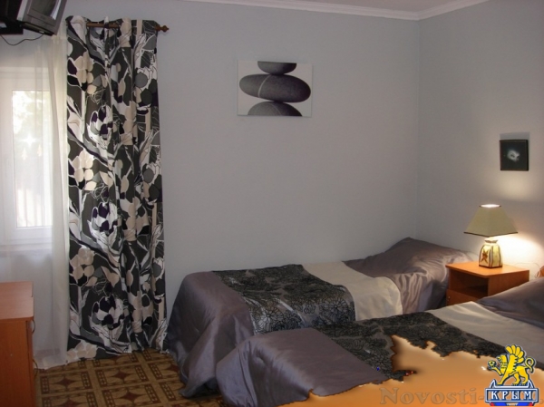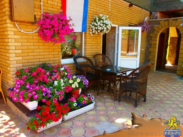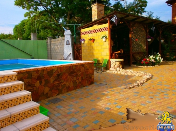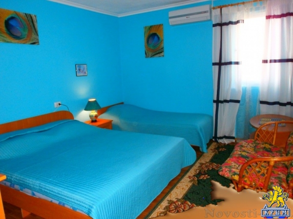 Цены указаны за номер в сутки Май: 1500 руб Удобства и услуги Горячая вода | Телевизор | Интернет | Парковка | Кондиционер | Холодильник | Стиральная машина | Бассейн | Детская площадка | Мангал | Полотенце | Утюг | Беседка | Сейф | Организуем экскурсии в любой уголок Крыма. Трансфер из любой точки Крыма,есть бесплатный. Ранний заезд и поздний выезд.Гибкий индивидуальный подход к каждому гостю.Для детей есть кроватки,стульчики для кормления.Санузел Душ и туалет есть в каждом номере,независимо от его категории Питание Проживание с предоставлением трех разового питание.Столики на веранде на свежем воздухе под ветвями винограда,есть закрытая столовая,обслуживание официантами.Домашняя кухня.Для детей до 10 лет есть детское питание. Автостоянка Крытый гараж на 5 машин и парковка у дома под камерами видеонаблюдения.Что есть на территорииУютная закрытая территория,несколько тематических беседок для отдыха,зона "барбекю",где можно приготовить и употребить любимый всеми на отдыхе,шашлык,есть бассейн 7х4 м с выделенной детской зоной.Есть качели,шезлонги,две восточные беседки,массажный стол.Есть вид на мореВид из окон Потрясающий вид на море. Условия для детей Для детей работает аниматор. Различные конкурсы,игры не оставят равнодушными детей и взрослых. На территории есть песочница,два надувных батута,качели. Отдых с животными по договоренностиПлощадь (территория): 10Всего номеров: 17Всего этажей: 2Расстояние до: моря: 180 магазина: 200 базара: 300 аптеки: 300 Пляж до пляжа 180 м по асфальтовой дороге,пляж -мелкая галька,местами песок,плавный заход в воду. Услуги, включенные в стоимость пользование бассейном | пользование мангальной | услуги аниматора | уборка номеров и смена белья | пользование пляжными принадлежностями (коврики,зонтики) Услуги за дополнительную плату трансфер | стирка | экскурсии | прокат велосипедовСкидкиСкидка 30%-50 % на проживание четвертого гостя ( для детей до 10 лет) в номерах «семейный стандарт четырех местный» и « полу люкс» Дети до 3 лет без предоставления основного места, проживание бесплатно. Бесплатный трансфер при проживании более 20 суток.Возможна оплата картойСменить Галерею