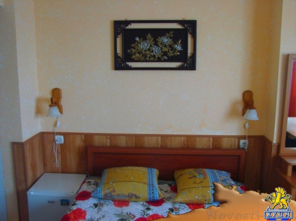 Двухкомнатный номер люкс площадью 70 м2. В нем может разместиться 4-5 человек. В номере люкс есть все удобства - душ, туалет, холодильник, два телевизора, кондиционер, своя мини-кухня, электрочайник, фен в ванной комнате, бесплатный доступ к беспроводному интернету. Двухкомнатный люкс имеет вместительный индивидуальный балкон над морем с прекрасным видом на пляж Качи и море, со столиками и креслами для отдыха.