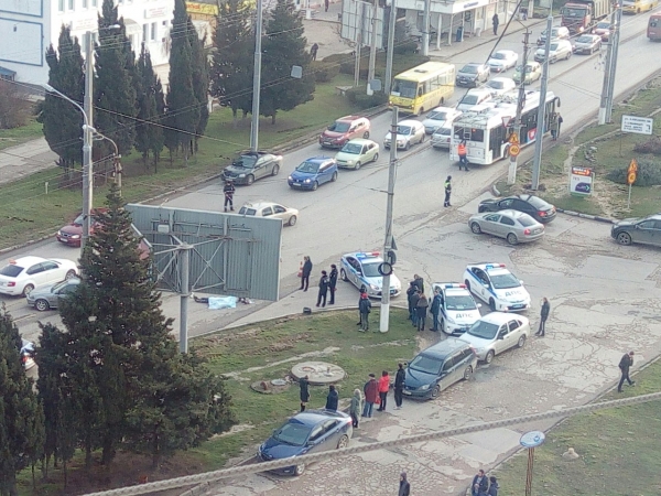 Сегодня утром в Севастополе в ужасном ДТП погиб пешеход. Об этом сообщают очевидцы в соц. сетях. Авария произошла в районе улицы Степаняна. Как сообщают очевидицы легковушка на большой скорости сбила насмерть человека, который переходил дорогу в неположенном месте. Сейчас движение в этом районе сильно затруднено, на месте идут следственные действия, движение регулируют сотрудники ГИБДД. Причины ДТП пока уточняются. В результате ДТП, по улице Колобова (поворот на заправку) образовалась огромная пробка. Фото: Автопартнер Крым