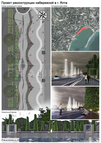 Дизайн-компания FRANDGULO(Ялта) разработала концепт обновленной, современной и оригинальной Набережной им. Ленина, включив в проект несколько очень интересных моментов.