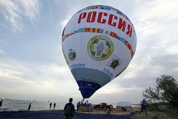 В воскресенье, 6 мая, в Крым из Кубани прилетел гигантский аэростат "Россия". Стартовав с Таманского полуострова и приземлившись в Керчи, аэростат совершил первый в истории перелет через Керченский пролив. Об этом сообщили организаторы - Благотворительный фонд святителя Луки Войно-Ясенецкого, передает корреспондент 3652.ru. Объем теплового аэростата составляет 4 тыс куб.м., в то время как объем обычных воздушных шаров - около 2,5 тыс. На его оболочку нанесены изображения государственного флага России, флагов всех субъектов страны, а также лики святых. Перелет занял около часа, примерно столько же аэростат кружил над Керчью. Управлял аэростатом президент Федерации воздухоплавания Ставропольского края Виталий Ненашев. Из Краснодарского края на полуостров передали амфору с вином, виноградную лозу и книги об истории региона. На крымском берегу шар встретила официальная делегация из Керчи. Перелет приурочен ко Дню Победы, поддержку организаторам оказало Русское географическое общество.