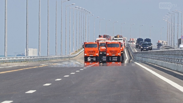 Сегодня утром, 16 мая в 5.30 утра одновременно со стороны Керчи и Таманского полуострова стартовало движение автомобилей по Крымскому мосту. Трасса четырехполосная, разрешенная скорость движения – 90 км/ч. Пропускная способность в сутки до 40 тысяч машин. Напомним, что вчера 15 мая состоялось официальное открытие автодорожной части Крымского моста. Первой из Краснодарского края в Крым проехала колонна из 35 грузовиков. Колонну возглавил КамАЗ, которым управлял президент России Владимир Путин. Автомобили преодолели 19-километровый транспортный переход с одного берега Керченского пролива на другой за 21 минуту. На другом конце 19-километрового моста, в Крыму, Путин принял участие в митинге-концерте по случаю открытия первой очереди транспортного перехода. «Искренне поздравляю вас с этим замечательным, в полном смысле этого слова, историческим днём. Историческим, потому что в разные исторические эпохи, ещё при царе, люди мечтали о том, чтобы построить этот мост. Потом вернулись к этой идее в 30-е, 40-е, 50-е годы прошлого столетия. Наконец, благодаря вашему труду и таланту этот проект, это чудо свершилось», — сказал Путин. Перед строителями, инженерами, рабочими выступили звезды российской эстрады - Лариса Долина, Дмитрий Билан, Валерия, Пелагея, Зара, Олег Газманов, Григорий Лепс. Отметим, что движение по мосту собирались запустить только в декабре, но выполнили работу раньше и уложились к началу курортного сезона.