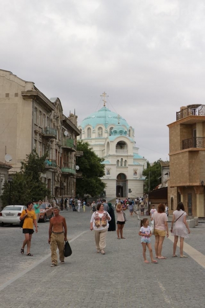 Вчера, 29 июня в Евпатории была открыта вторая очередь маршрута "Малый Иерусалим". Как сообщает корреспондент 3652.ru, на площади у Свято-Николаевского собора собрались зрители и участники экскурсии по улицам старого города. После торжественной церемонии открытия все желающие приняли участие в экскурсии и отправились по маршруту: мечеть Хан-Джами, улица Красноармейская, турецкие бани, синагога "Егия-Капай", караимские кенасы. На протяжении всего вечера на площади выступали лучшие творческие и национальные коллективы города, театр на ходулях и живые статуи. У каждого храма экскурсанты смогли ознакомиться с обычаями и традициями народов, населяющих Евпаторию.