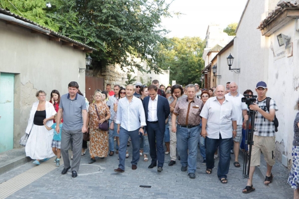 После торжественной церемонии открытия все желающие приняли участие в экскурсии и отправились по маршруту: мечеть Хан-Джами, улица Красноармейская, турецкие бани, синагога "Егия-Капай", караимские кенасы.