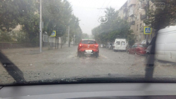 Как сообщают местные жители, ливневки не справляются с потоками воды после дождя и многие из горожан не рискнули выехать на своих автомобилях на работу.